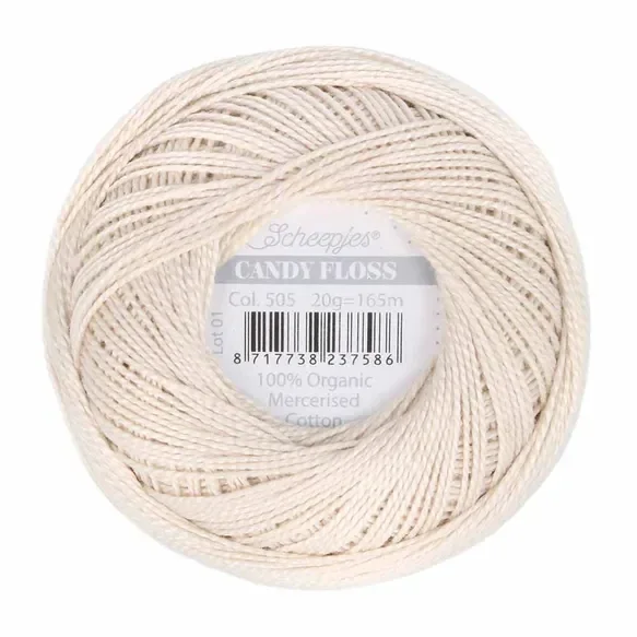 Waan uzelf in de snoepwinkel met het suikerzoete Scheepjes Candy Floss. Candy Floss is de eerste Scheepjes collectie die zich ook buiten het haak- en breisegment bevindt. Dit maakt Candy Floss een uniek en veelzijdig garen. Scheepjes Candy Floss is gemaakt van 100% biologisch gemerceriseerd katoen. Het garen heeft een hoge twijning en een prachtige glans, wat zorgt voor mooie gedefinieerde steken in uw werk. Bovendien splijt het garen niet. Al deze eigenschappen maken Scheepjes Candy Floss de perfecte keuze voor uiteenlopende technieken en projecten. Denk aan vrij borduren, Sashiko, frivolité, handquilten, micro-haakprojecten zoals amigurumi en sieraden of het aanbrengen van gehaakte randen aan dekens, accessoires en kleding.