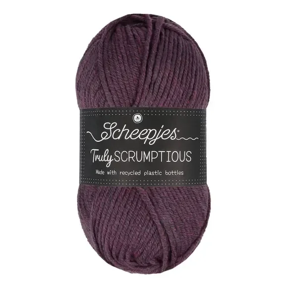 Scheepjes Truly Scrumptious is een Premium Acrylgaren gemaakt van 50% Gerecycled Polyester (plastic flessen) en 50% Acryl. De geadviseerde naalddikte is 5.00mm (stekenverhouding: 13 steken x 18 naalden tricotsteek is 10 x 10cm). Verkrijgbaar in veel verschillende kleuren, in bollen van 100 gram (looplengte 108 meter).
